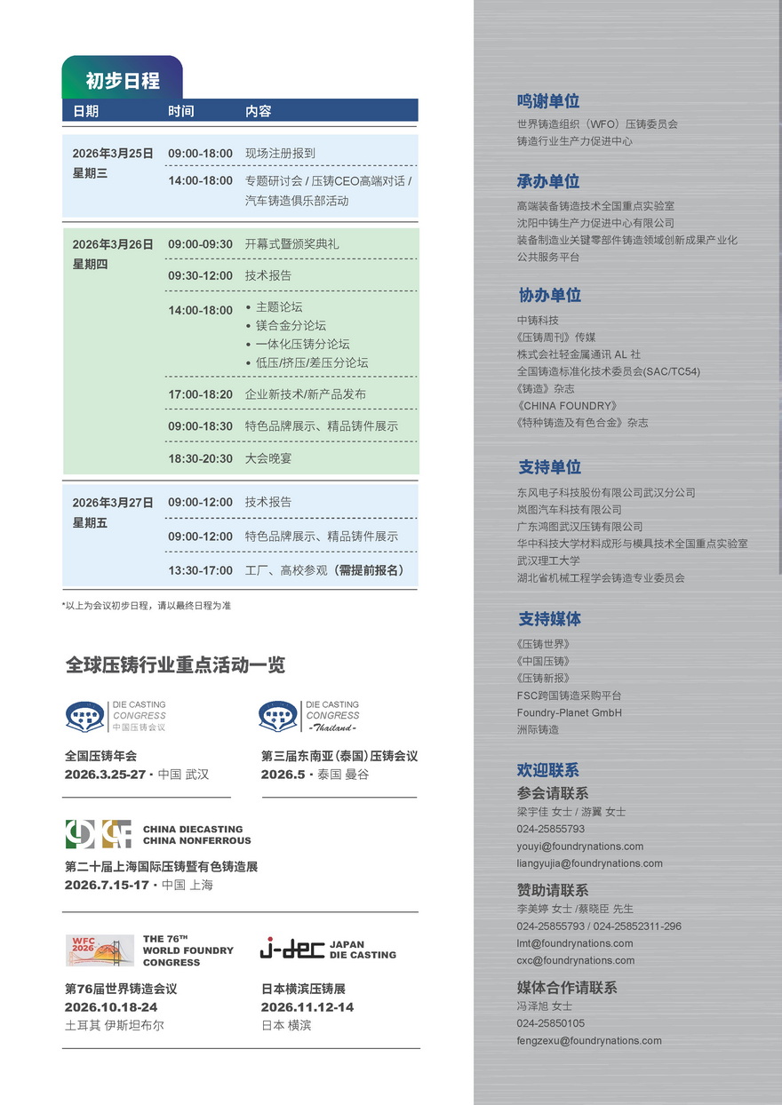 《压铸世界》、《中国压铸》、《压铸新报》、FSC赛系铸造采购平台