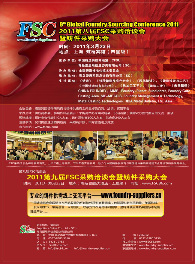 下届预告:2011第九届FSC采购洽谈会暨铸件采购大会,