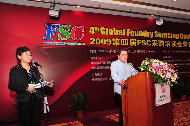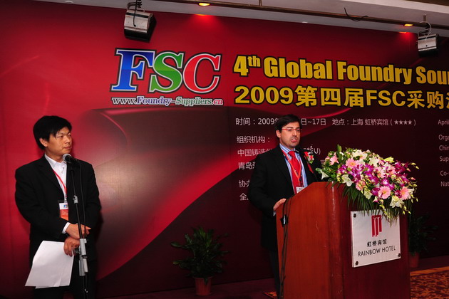 由中国铸造供应商联盟(CFSU)及青岛爱思系信息咨询有限公司(SC)主办,全国铸造标准化技术委员会协办的2009第四届FSC采购洽谈会暨铸件采购大会于4月16日~17日在上海虹桥宾馆(四星级)成功举办。
