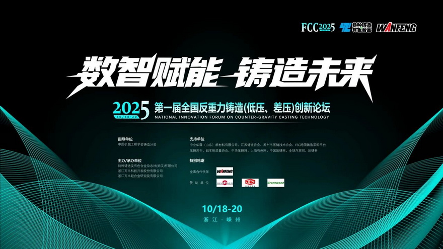 10月18-20日,第一届全国反重力铸造(低压、差压)创新论坛在浙江嵊州成功召开,本次会议由中国机械工程学会铸造分会指导,武汉产研院权属企业特种铸造及有色合金杂志社(武汉)有限公司、浙江万丰科技开发股份有限公司、浙江万丰轻合金研究院有限公司共同主办、承办。