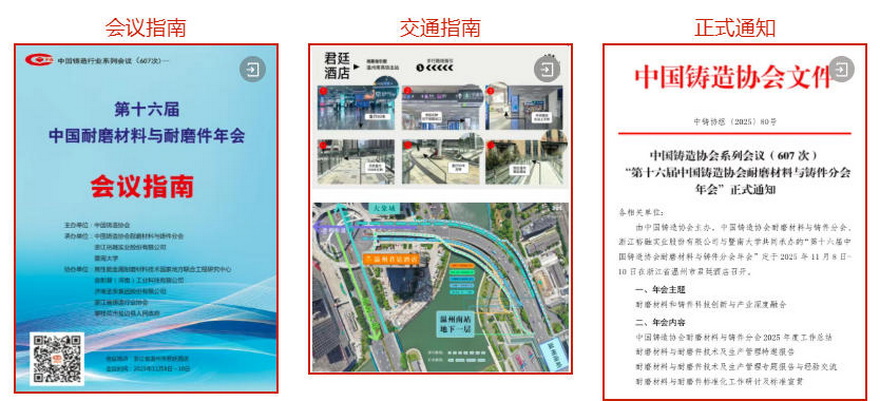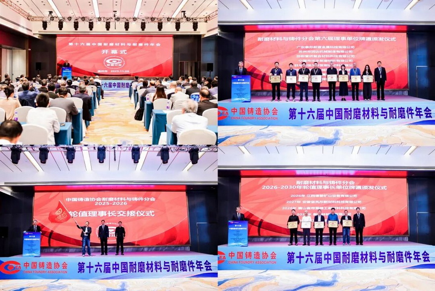 由中国铸造协会主办,中国铸造协会耐磨材料与铸件分会、浙江裕融实业股份有限公司与暨南大学共同承办的“第十六届中国铸造协会耐磨材料与铸件分会年会”定于 2025 年 11 月 8 日- 10 日在浙江省温州市君廷酒店召开。