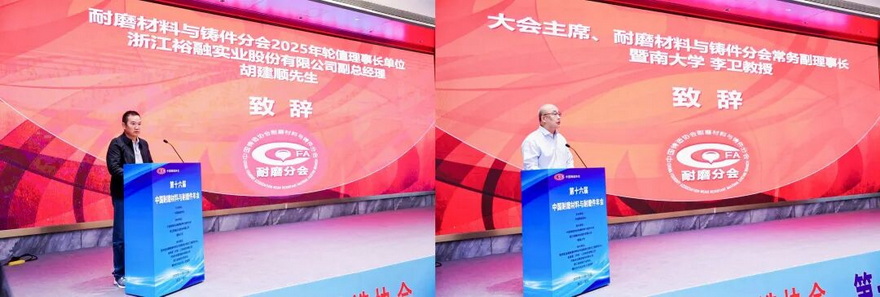 随后耐磨材料与铸件分会2025年轮值理事长、浙江裕融实业股份有限公司胡建顺副总经理致辞,大会主席、耐磨材料与铸件分会常务副理事长、暨南大学李卫教授致辞,耐磨材料与铸件分会秘书长王永喆作中国铸造协会耐磨材料与铸件分会2025年度工作报告。