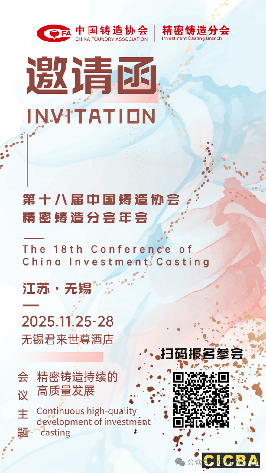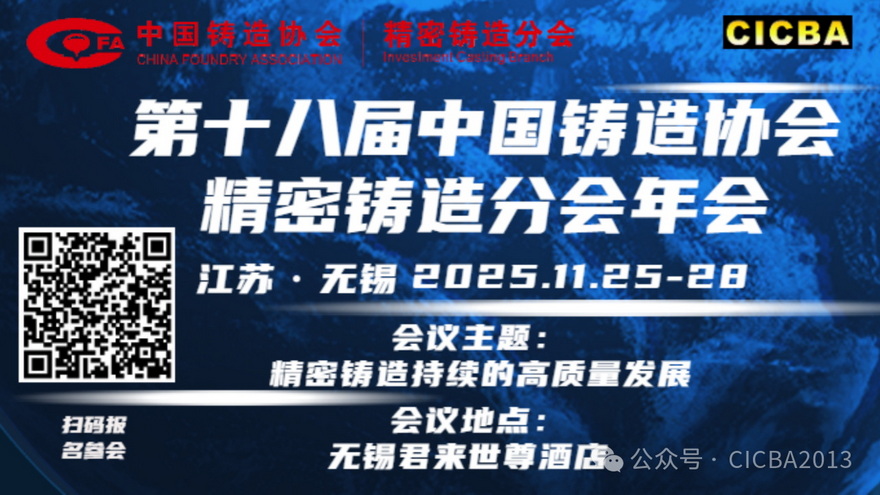《第十八届中国铸造协会精密铸造分会年会》于2025年11月25-28日在江苏省无锡市召开。年会围绕主题“精密铸造持续的高质量发展”开展技术交流和研讨,同期也召开“精铸原辅材料及设备展示会”,欢迎国内外精铸行业同仁参加。