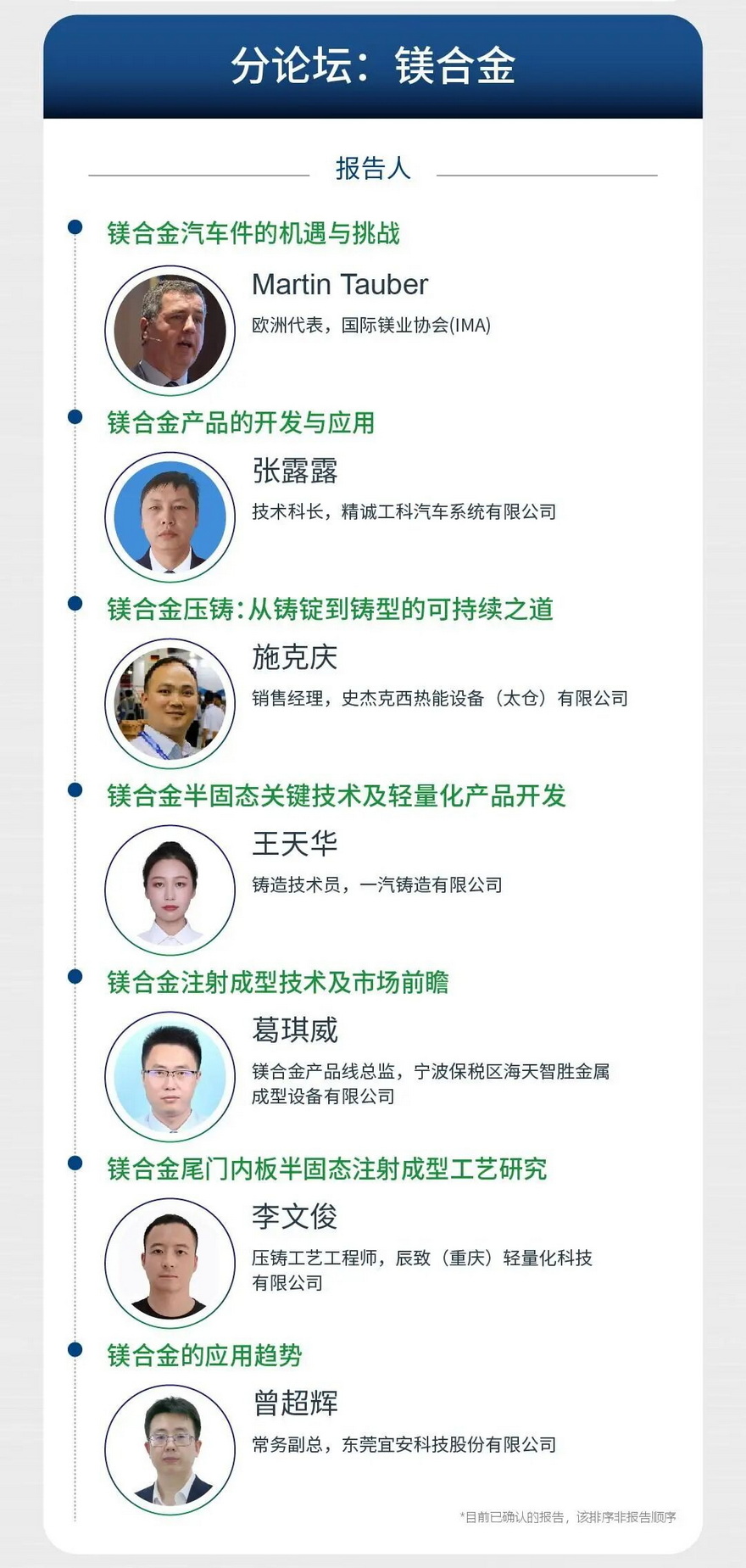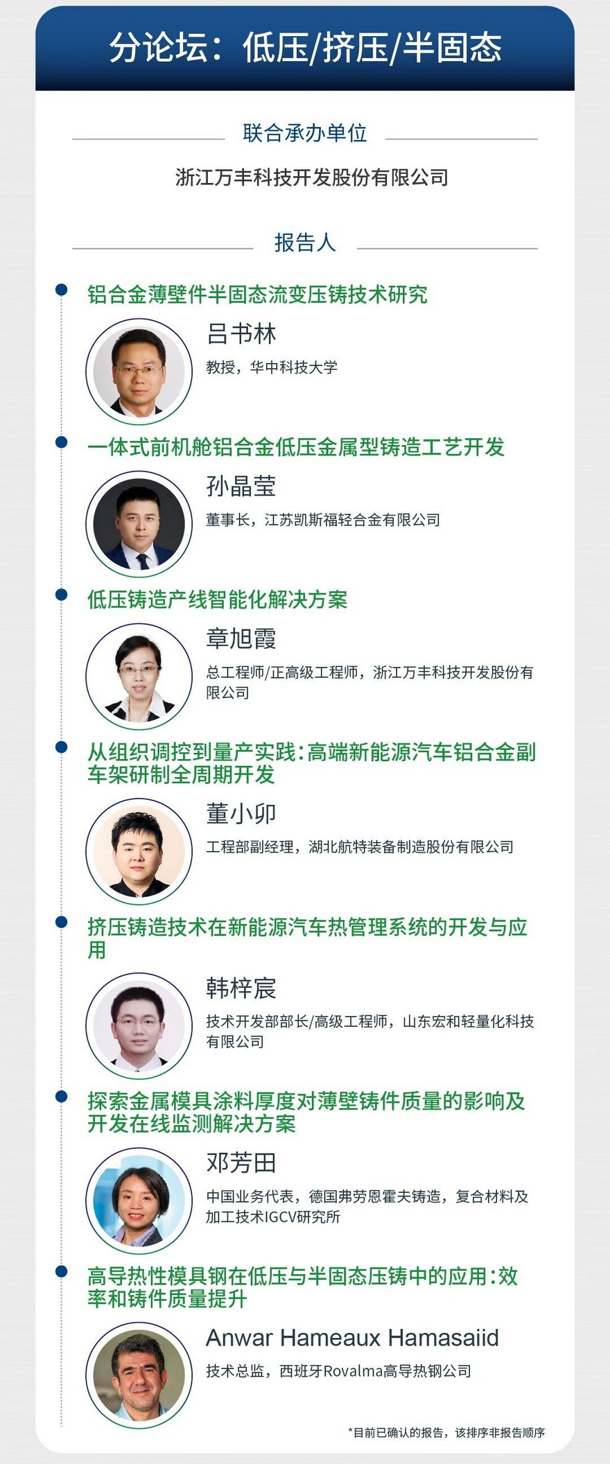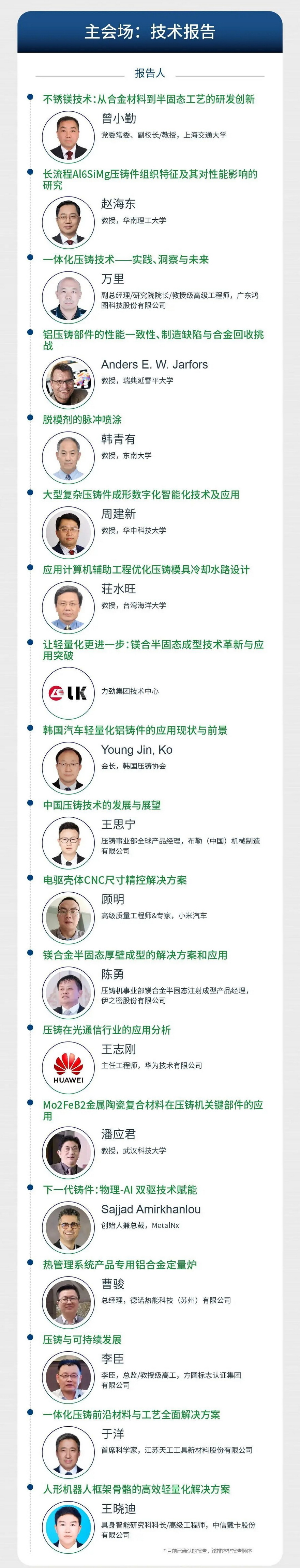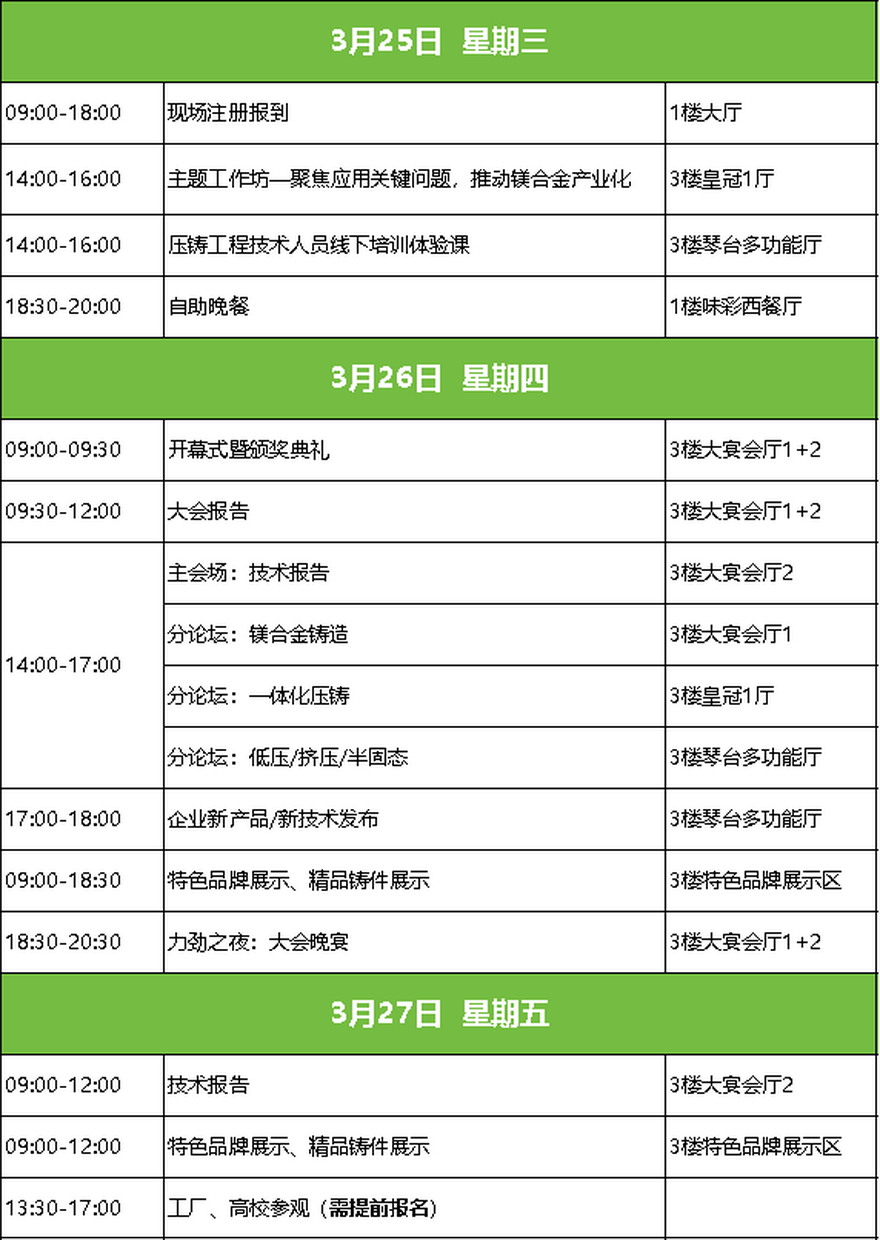 本次会议会议以“铝”稳行远,“镁”启新程为主题,旨在汇聚全球学术界、企业界、车厂等各方力量,以技术交流推动“铝稳基业,镁开新局”的产业格局,共同绘制轻量化时代的全球压铸产业新蓝图。诚邀压铸同仁莅临参会!