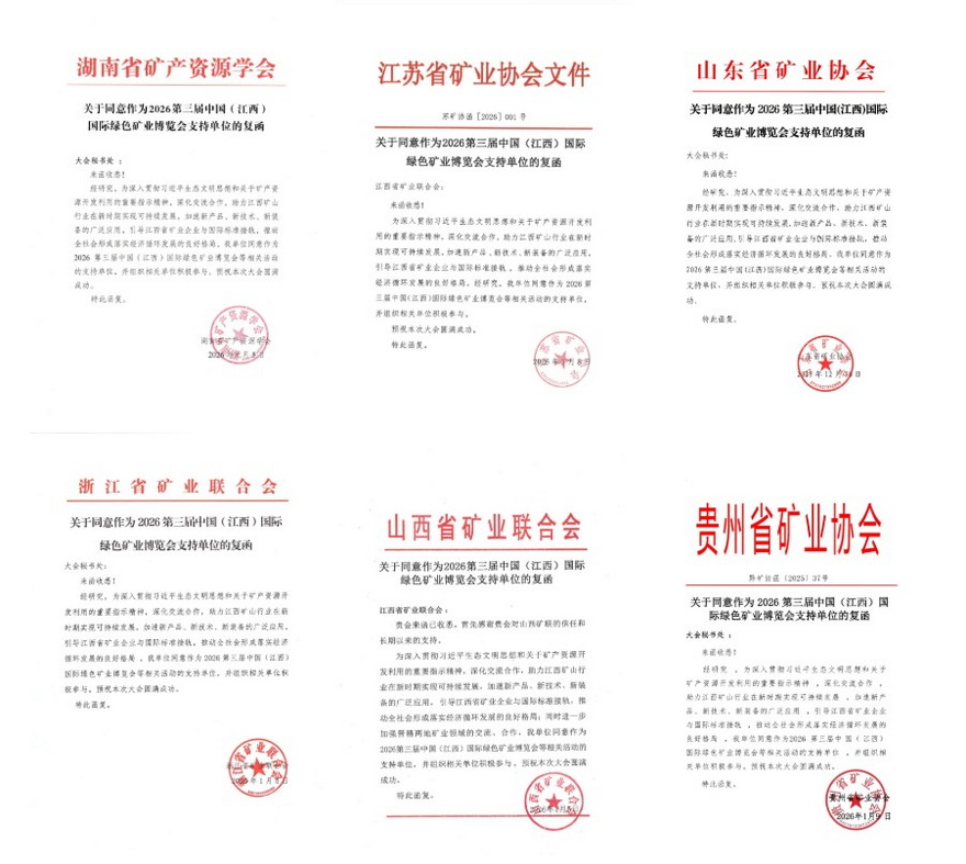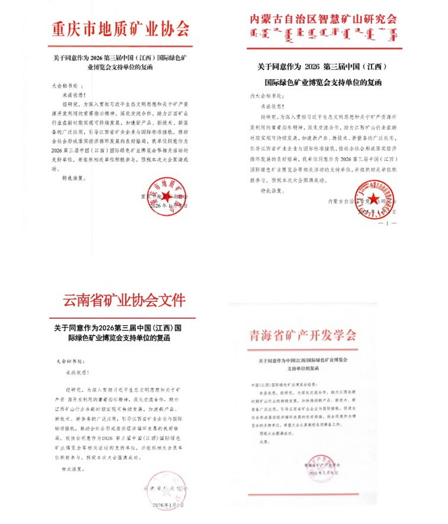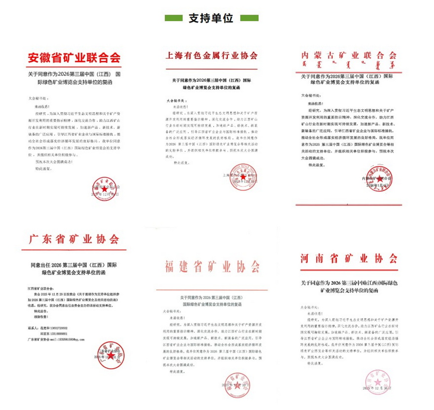 我们坚信,在各行业协会的鼎力支持、全产业链企业的积极参与、社会各界的广泛关注下,2026第三届中国(江西)国际绿色矿业博览会必将成为一场规格高、影响广、实效强的国际矿业盛会,为推动全国绿色矿业转型升级、助力江西打造世界级矿业基地贡献重要力量!