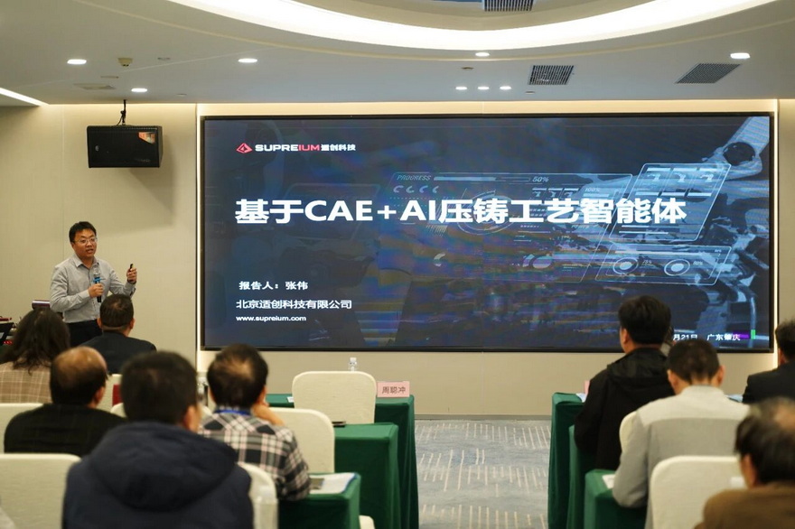 上午10时进入大会报告环节。广东鸿图科技股份有限公司创新总监林韵博士作了《一体化压铸技术——实践、洞察与未来》、华南理工大学付志强教授作了《金属粘结剂喷射3D打印的影响因素及其应用进展》、广东省铸力铸材科技有限公司总经理谢志忠高级工程师作了《呋喃树脂自硬砂工艺废气减排综合对策及思考》、北京适创科技有限公司总监张伟作了《基于CAE+AI压铸工艺智能体》、奇瑞新能源汽车股份有限公司压铸总工程师肖榕作了《智能全闭环模拟控制系统在超大型一体压铸成型技术上的应用和研究》特邀报告,报告后提问、讨论活跃,深化了报告技术的阐释。