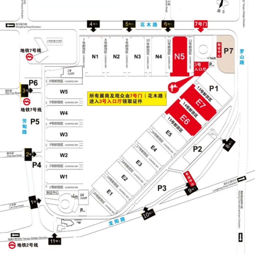 小车自驾:从上海新国际博览中心7号门进入P1停车场 导航可点击上海新国际博览中心(P1)停车场