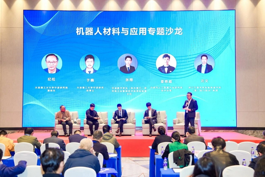 活动同期举行了“机器人材料应用专题沙龙”,沙龙以访谈交流的方式进行,由大连理工大学宁波研究院副院长纪松主持,4位嘉宾带来精彩分享。