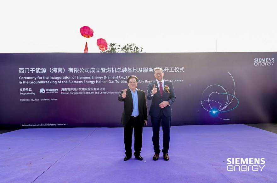12月18日,西门子能源(海南)有限公司成立暨燃机总装基地及服务中心开工仪式在海南洋浦经济开发区举行,这是海南自由贸易港全岛封关落地的首个制造业标志性外资项目。