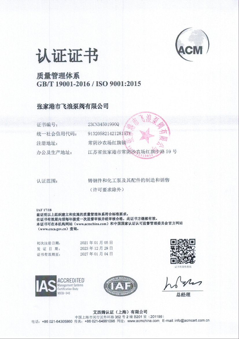 张家港市飞浪泵阀有限公司 | Feilang Pump & Valve Co.,Ltd | +86-512-58640882 | feilang.foundry.cn