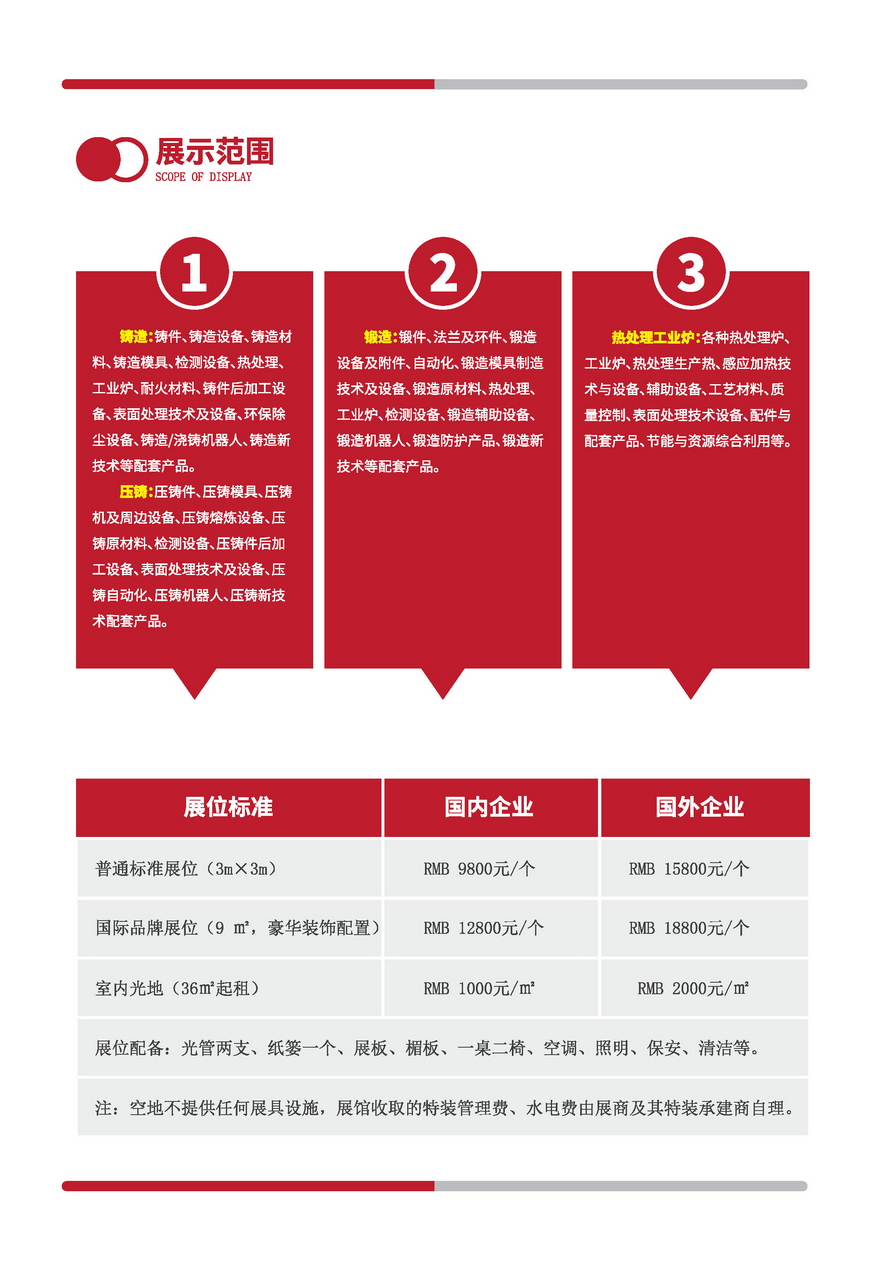 铸造:铸件、铸造设备、铸造材料、铸造模具、检测设备、热处理、工业炉、耐火材料、铸件后加工设备、表面处理技术及设备、环保除尘设备、铸造/浇铸机器人、铸造新技术等配套产品。