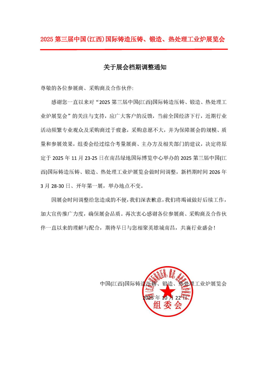 The 3rd China (Jiangxi) International Foundry, Die Casting, Forging, and Heat Treatment Industrial Furnace Exhibition in 2025
