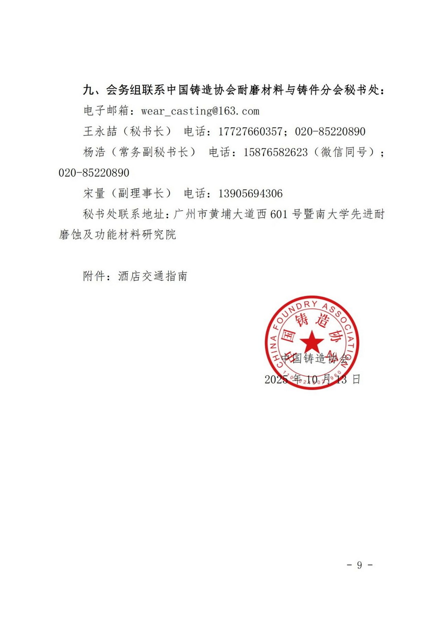 2025-11-06 -- 第十六届中国铸造协会耐磨材料与铸件分会年会交通指南