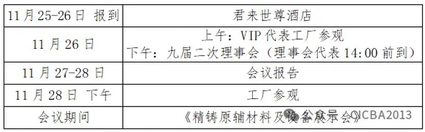 特通知中国铸造协会精密铸造分会的会员单位参加本次年会,同时欢迎和邀请国内外精铸行业同仁参加。报名相关流程请关注我会网站(http://www.cicba.net)及微信公众号(CICBA2013)。网上报名截至时间2025年11月10日。