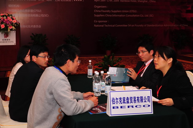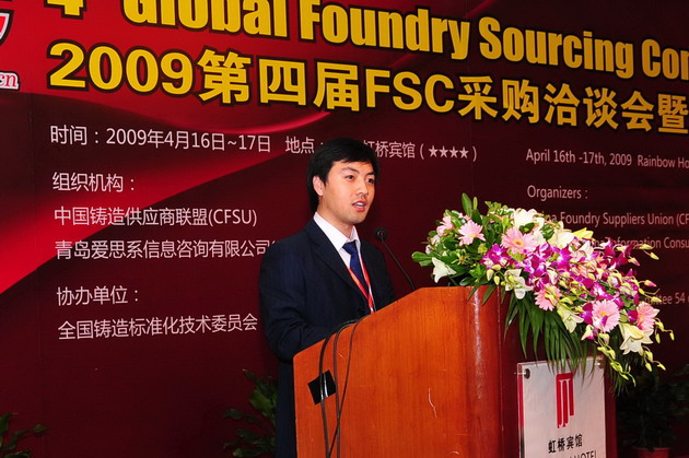 由中国铸造供应商联盟(CFSU)及青岛爱思系信息咨询有限公司(SC)主办,全国铸造标准化技术委员会协办的2009第四届FSC采购洽谈会暨铸件采购大会于4月16日~17日在上海虹桥宾馆(四星级)成功举办。