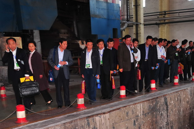 下午,采购商、供应商代表一行80多人兴致勃勃地参观了上海宏钢电站铸锻设备有限公司的铸钢、铸铁两个车间。代表就感兴趣的问题与宏钢技术人员作了咨询……