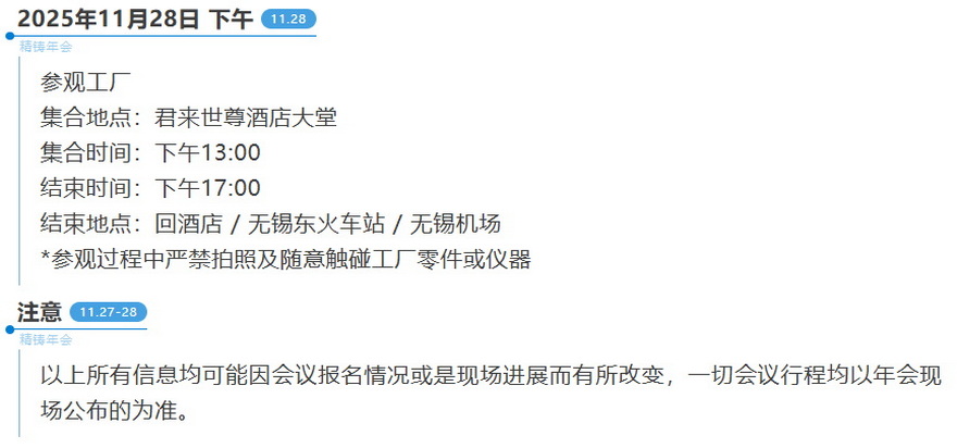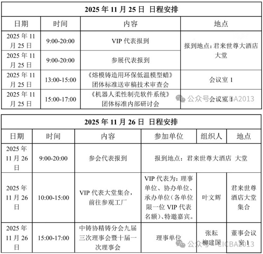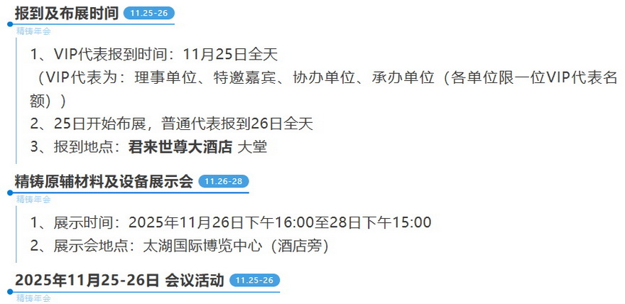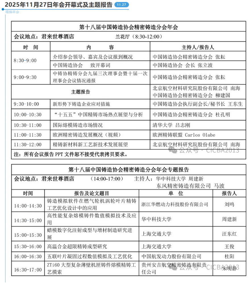 2025第十八届中国铸造协会精密铸造分会年会会议日程安排