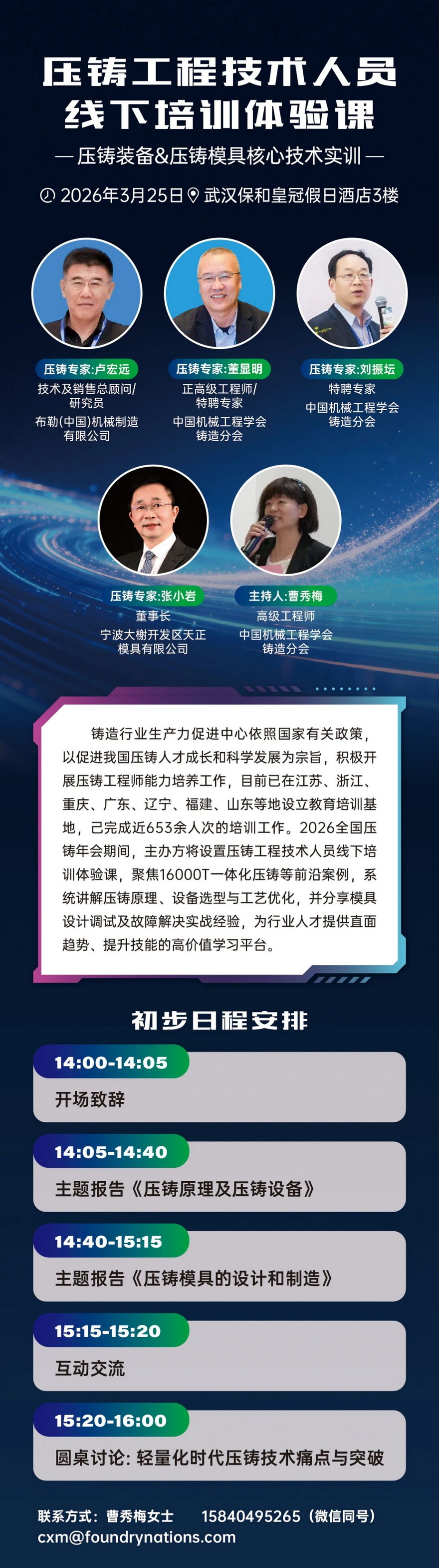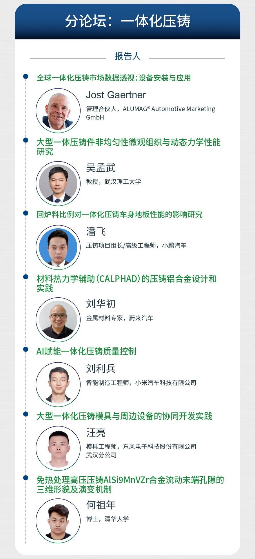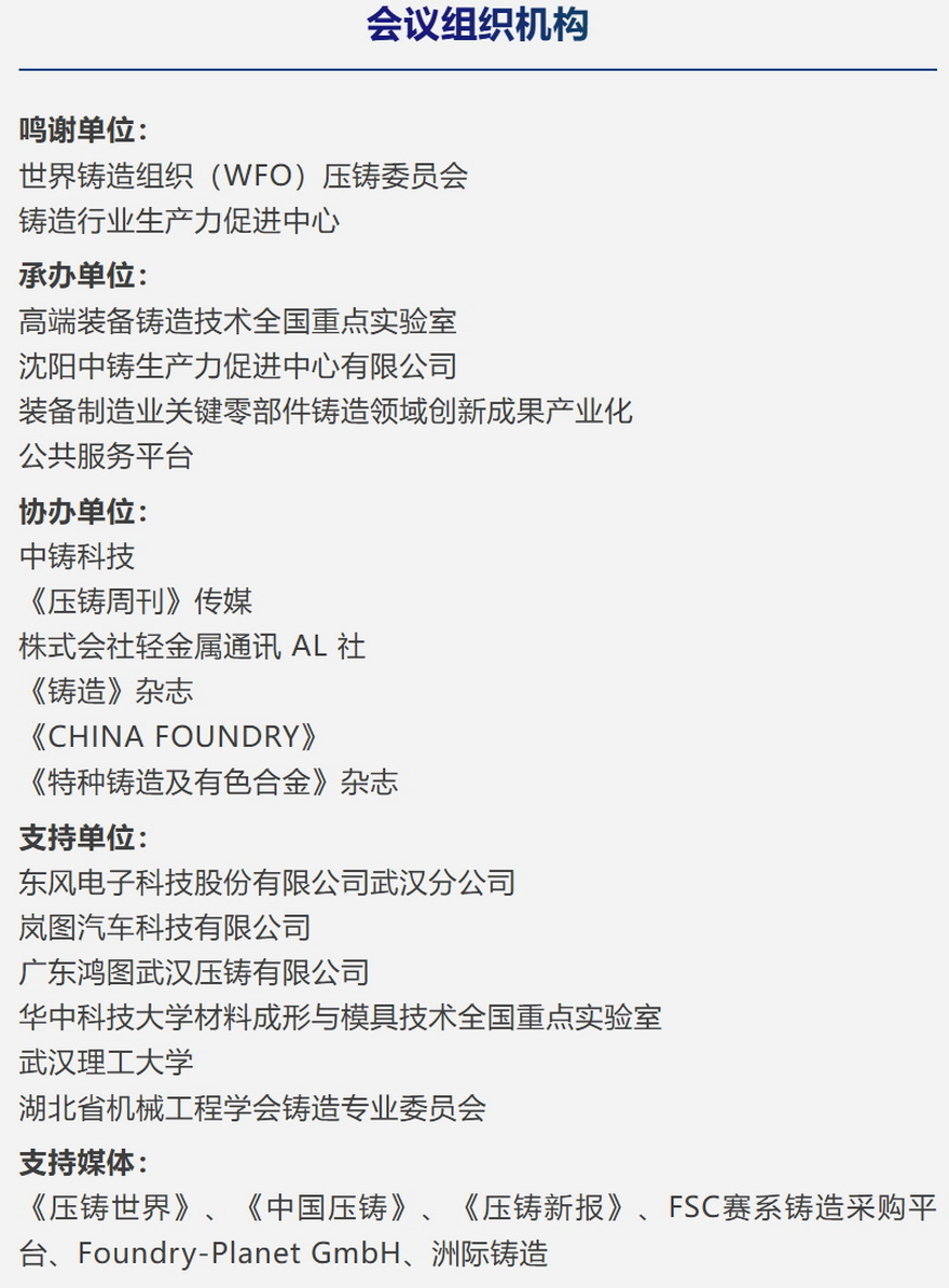 本次会议会议以“铝”稳行远,“镁”启新程为主题,旨在汇聚全球学术界、企业界、车厂等各方力量,以技术交流推动“铝稳基业,镁开新局”的产业格局,共同绘制轻量化时代的全球压铸产业新蓝图。诚邀压铸同仁莅临参会!