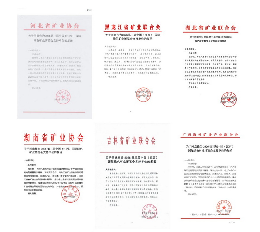 我们坚信,在各行业协会的鼎力支持、全产业链企业的积极参与、社会各界的广泛关注下,2026第三届中国(江西)国际绿色矿业博览会必将成为一场规格高、影响广、实效强的国际矿业盛会,为推动全国绿色矿业转型升级、助力江西打造世界级矿业基地贡献重要力量!