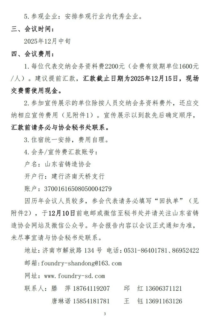 关于召开2025年度山东省铸造年会暨省铸协会员代表大会、山东省铸造协会成立40周年庆典的预备通知