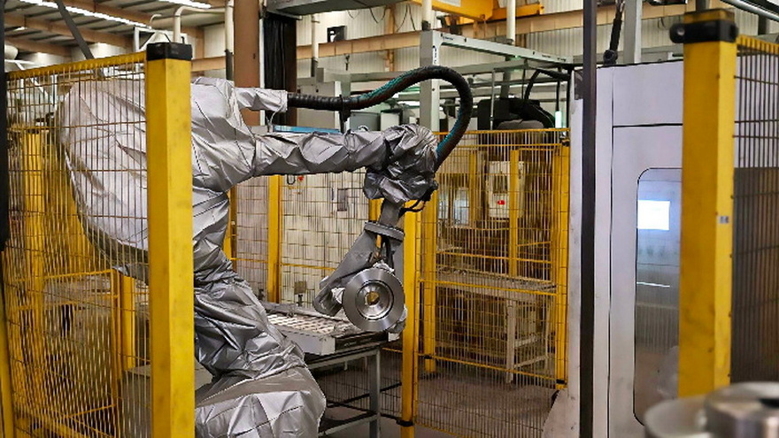 近日,记者走进山东惠宇汽车零部件有限公司的精加工车间,一幅热火朝天的智能生产画卷展现在眼前。一台台智能机械臂整齐排列,宛如训练有素的“钢铁巧手”,稳稳地抓取亮银色的刹车盘产品。随着机械臂灵活地起落腾挪,一件件刹车盘被精准送至每一道工序:探伤仪的电磁感应扫描信号快速扫过工件表面,仔细排查每一处细微瑕疵;接触式高精度测量仪精准识别0.001毫米以内的公差数据,严格检测各项工艺尺寸;自动激光打标机迅速完成产品可追溯信息的刻印。从抓取加工到转运检测,整个流程一气呵成、无缝衔接,智能化制造车间生产的流畅有序尽显科技魅力。