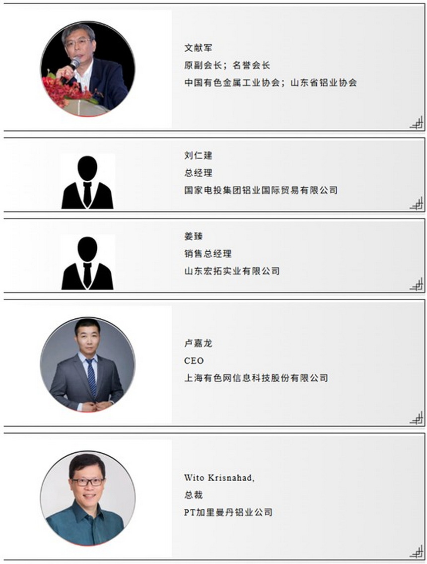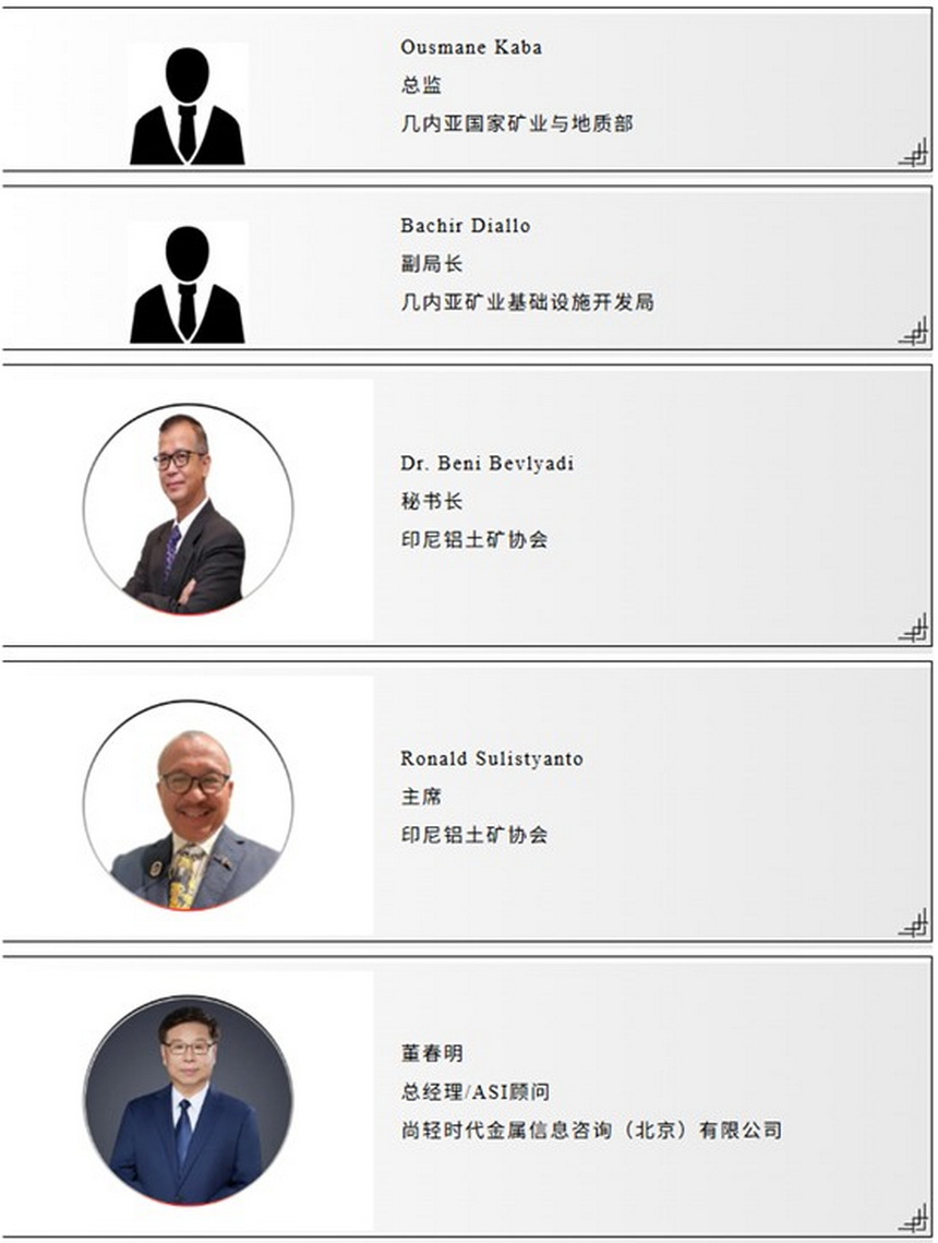 本次嘉宾邀约,我们不仅将目光聚焦在国内对于铝产业链有深刻见解的行业大咖,我们还邀请了几内亚国家矿业与地质部总监——Ousmane Kaba,几内亚矿业基础设施开发局副局长——Bachir Diallo,印尼铝土矿协会主席、PT Laman 矿业公司助理董事——Ronald Sulistyanto,Wito Krisnahad 总裁 PT加里曼丹铝业公司,IFCHOR GALBRAITHS亚太首席研究分析师——Melvin Chin……