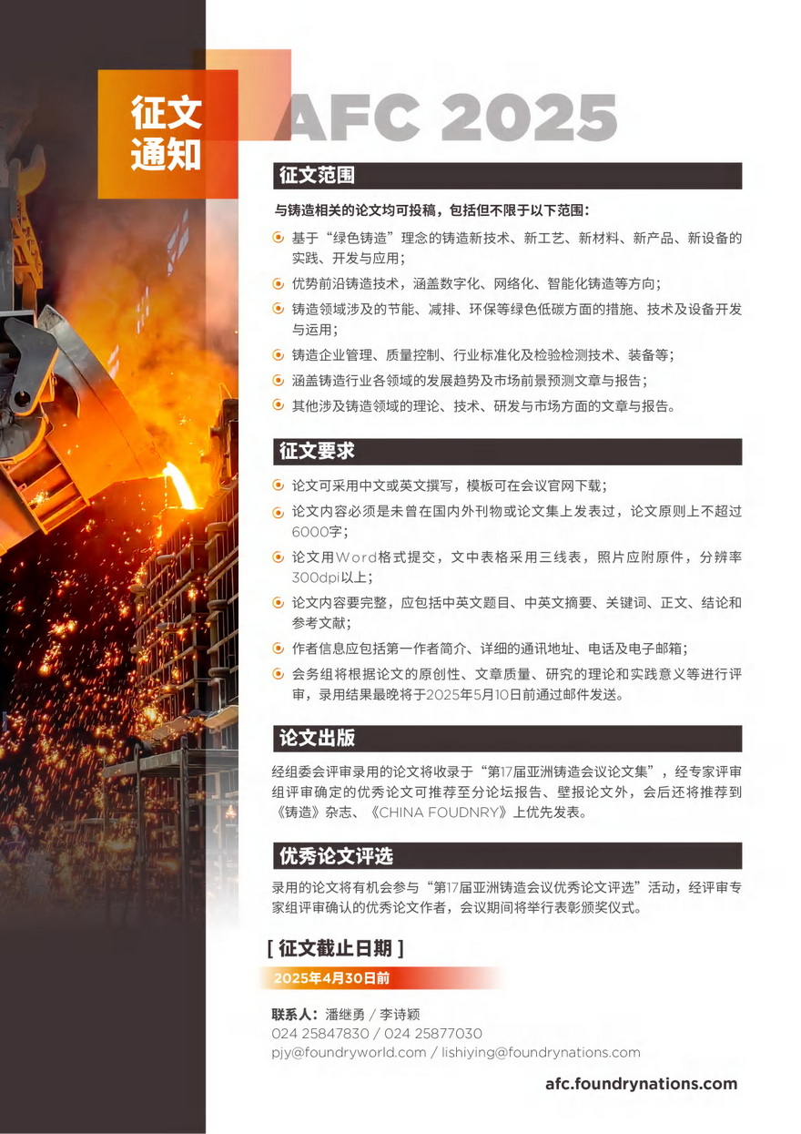 2025第17届亚洲铸造会议征文通知(10.25 - 西安)