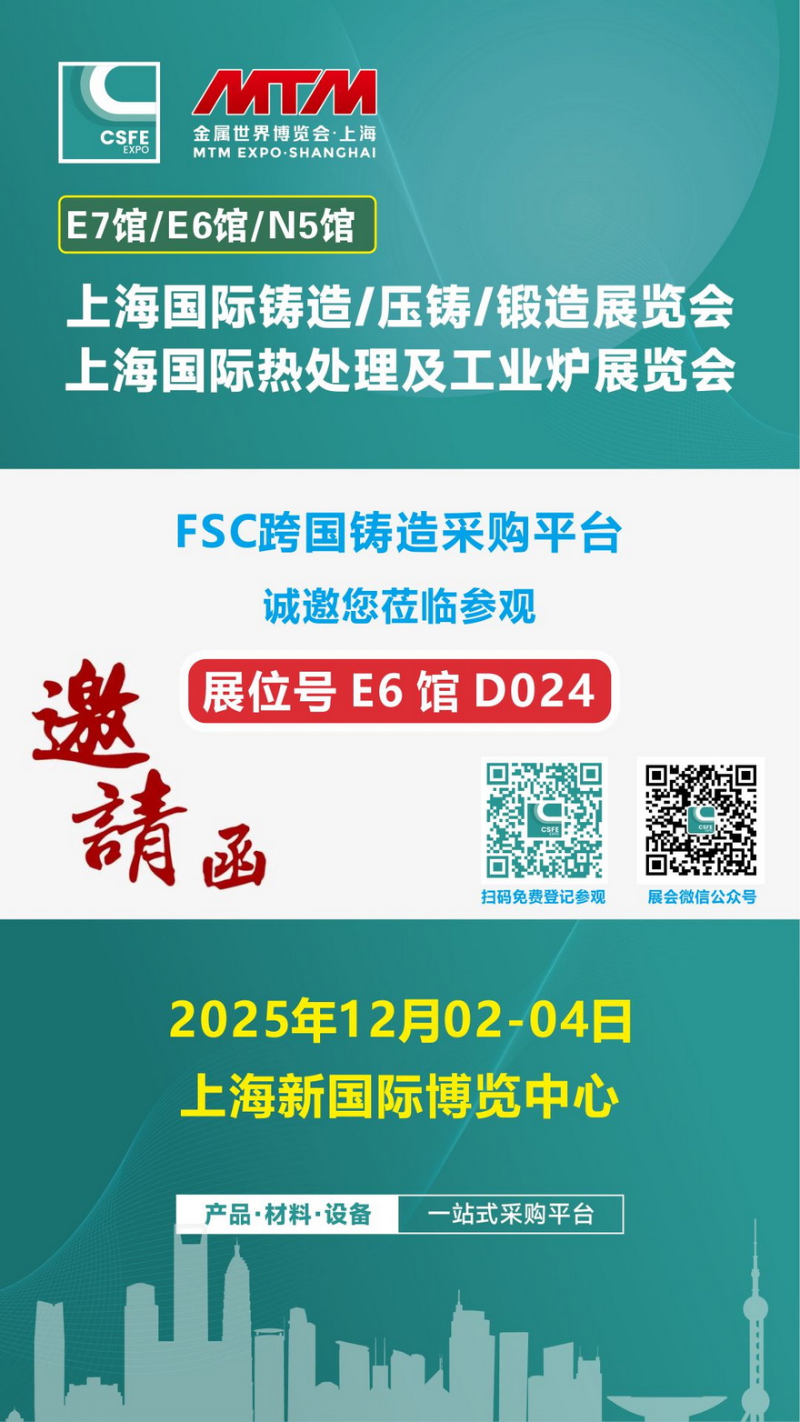 FSC赛系铸造采购平台将作为支持媒体参加本次展会,展位号:E6馆 D024