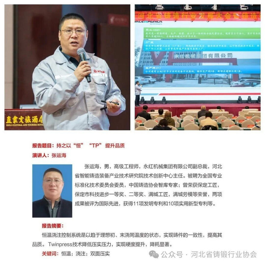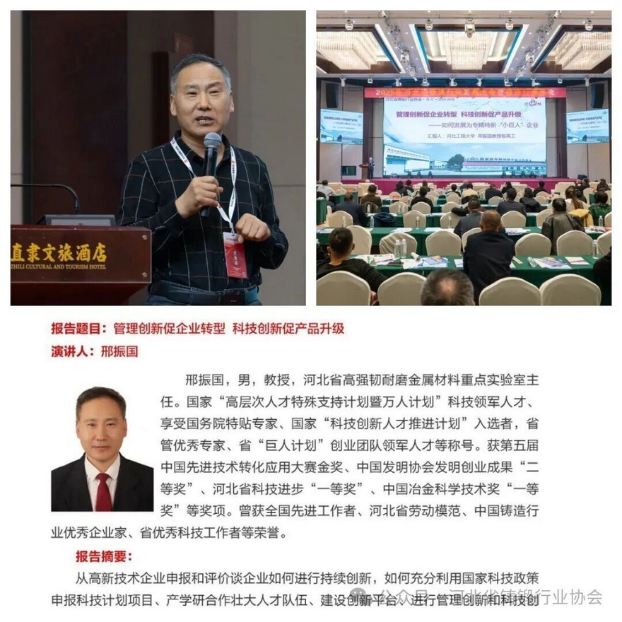 搭建技术创新平台,促进合作交流,持续推动我省铸造行业数智化发展,2025年河北省铸造行业发展大会暨行业年会于2025年10月29日在国家历史文化名城保定成功举办。本次大会围绕"凝心聚力,共铸发展,聚焦行业新动能"为主题,深入探讨当前铸造现状、发展走向,如何再次突破,坚定信心,持续走创新发展之路来应对市场复杂形势变化。