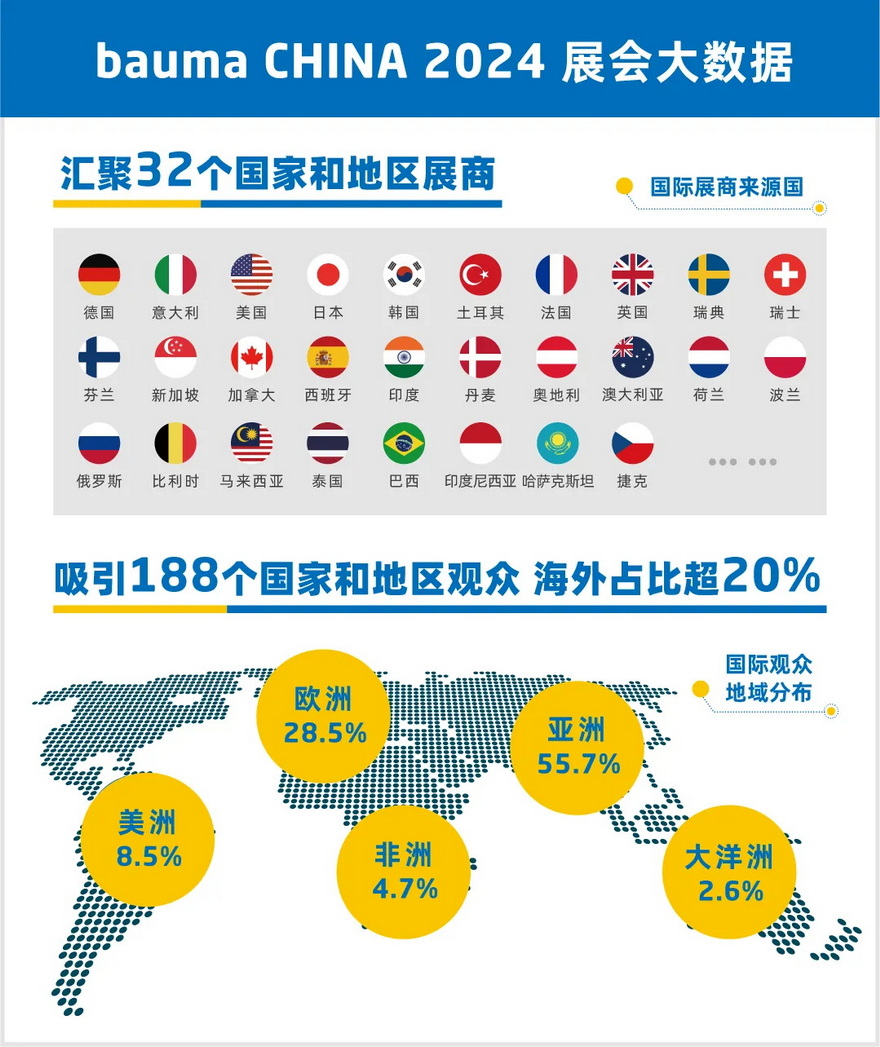 在此背景下,被誉为行业风向标的bauma CHINA 2026招展工作正火热进行,并已吸引全球30个国家及地区的企业踊跃报名,成为企业突破增长瓶颈、链接全球机遇的核心平台。